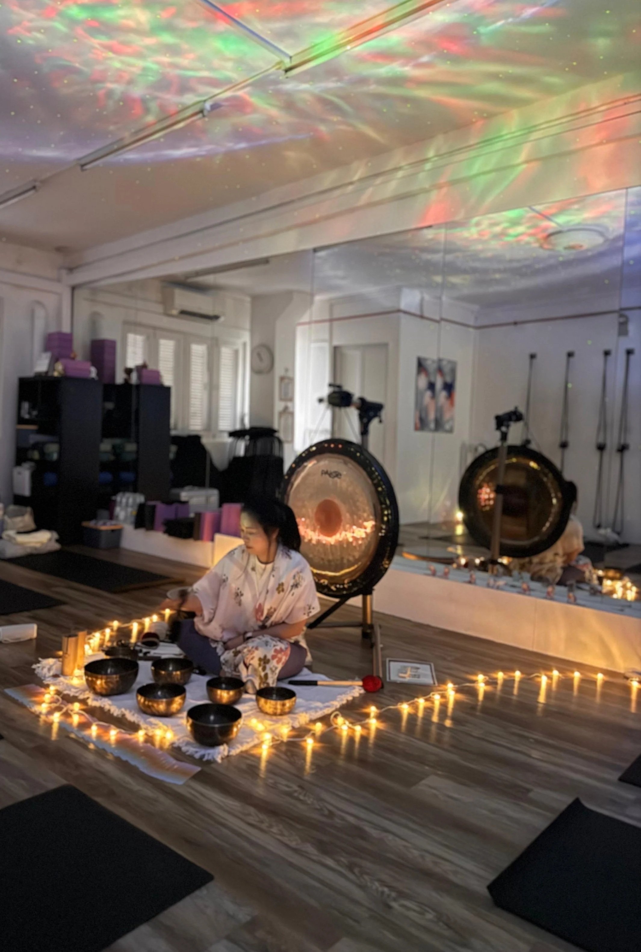 The resonant vibrations from instruments - singing bowls and gongs - encourage the brain to shift into lower-frequency brainwave states, like alpha and theta.